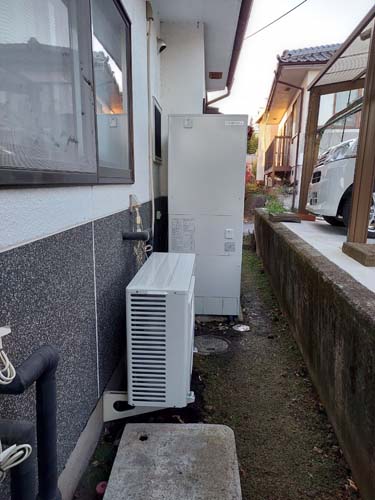 トップページ > 工事事例一覧 > 三木市大村 コロナ自然冷媒CO2家庭用ヒートポンプ給湯機ヒートポンプユニットCHP-DZ601K エコキュート交換工事