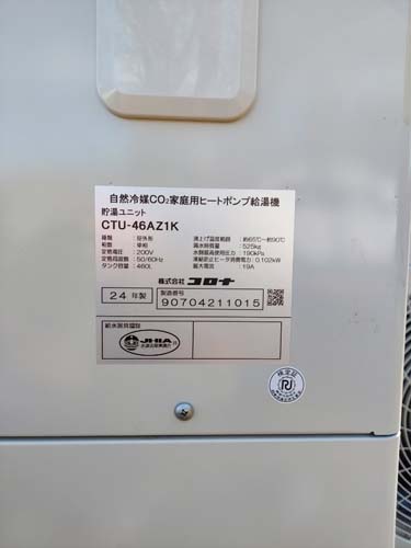 福崎町西田原 コロナエコキュート→コロナ自然冷媒CO2家庭用ヒートポンプ給湯機貯湯ユニットCTU-46AZ1K エコキュート交換工事