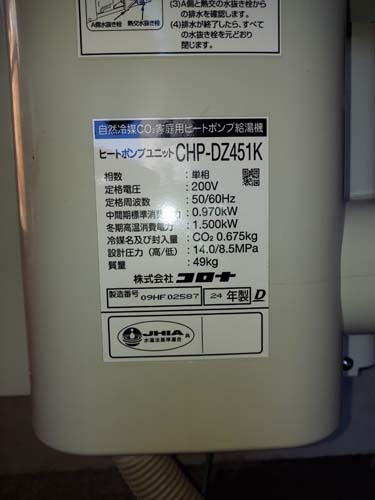 トップページ > 工事事例一覧 > 西宮市愛宕山 コロナ自然冷媒CO2家庭用ヒートポンプ給湯機貯湯ユニットCTU-37AZ1K、ヒートポンプユニットCHP-DZ451K エコキュート交換工事