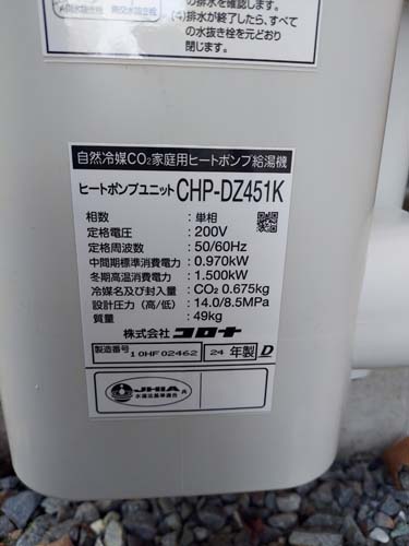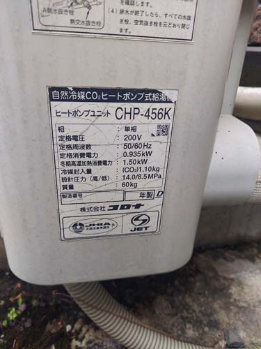 播磨町古宮 コロナ自然冷媒CO2家庭用ヒートポンプ給湯機 ヒートポンプユニットCHP-456K→コロナ自然冷媒CO2家庭用ヒートポンプ給湯機貯湯ユニットCTU-37AZ1K、ヒートポンプユニットCHP-DZ451K エコキュート交換工事