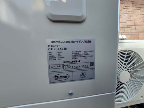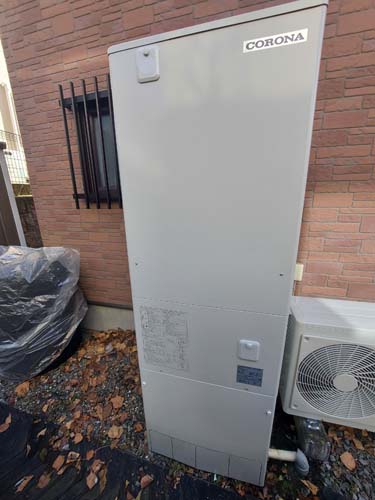 播磨町古宮 コロナ自然冷媒CO2家庭用ヒートポンプ給湯機貯湯ユニットCTU-37AZ1K、ヒートポンプユニットCHP-DZ451K エコキュート交換工事