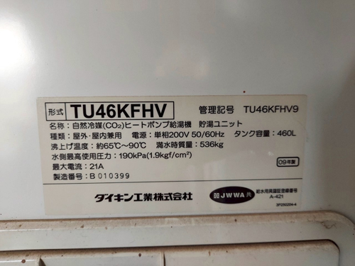 明石市大明石町 ダイキン自然冷媒CO2ヒートポンプ給湯機 貯湯ユニットTU46KFHV→コロナ自然冷媒CO2家庭用ヒートポンプ給湯機貯湯ユニットCTU-37AZ1K、ヒートポンプユニットCHP-DZ451K エコキュート交換工事