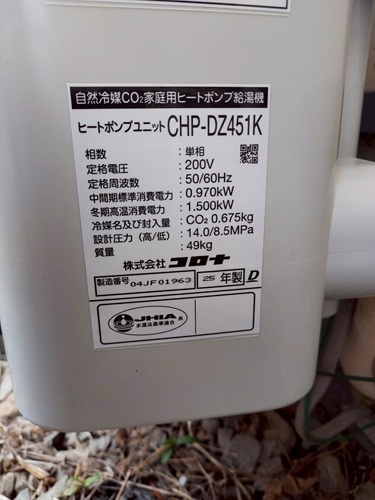 トップページ > 工事事例一覧 > 明石市大明石町 コロナ自然冷媒CO2家庭用ヒートポンプ給湯機貯湯ユニットCTU-37AZ1K、ヒートポンプユニットCHP-DZ451K エコキュート交換工事