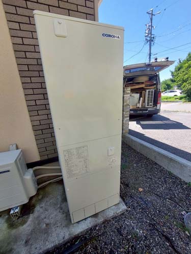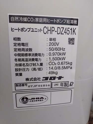 神戸市中央区三宮町 コロナ自然冷媒CO2家庭用ヒートポンプ給湯機 ヒートポンプユニットCHP-DZ451K エコキュート交換工事|兵庫県のエコキュート専門交換工事店|兵庫エコキュート交換ショップ補助金対応可能