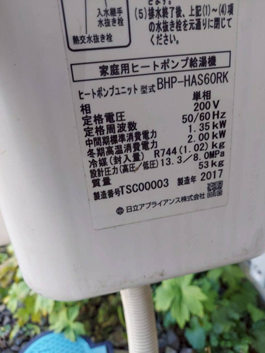 明石市本町 日立家庭用ヒートポンプ給湯機ヒートポンプユニットBHP-HAS60RK、自然冷媒CO2ヒートポンプ給湯機BHP-TA462K→コロナ自然冷媒CO2家庭用ヒートポンプ給湯機ヒートポンプユニットCHP-DZ451K エコキュート交換工事